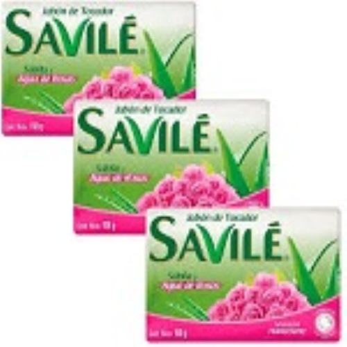 Jabón de tocador, "SAVILÉ", sábila y agua de rosas, 5 barras de 100 g cada una